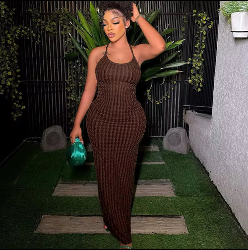 Sexy Halter Backless Solid Color Dress -